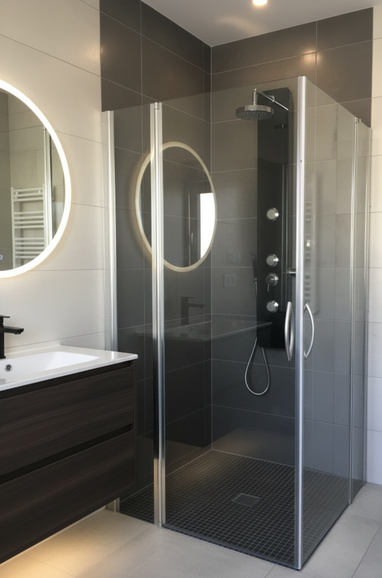 Cabine retangular com fixo portas batente fixo